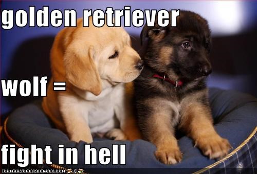 Golden Retriever Wolf Fight In Hell I Has A Hotdog Dog