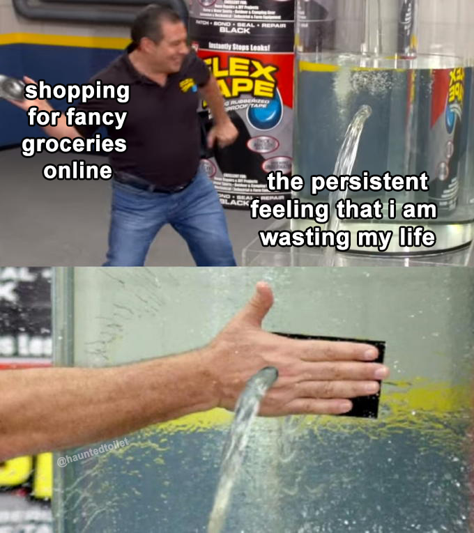 Meme tape on water. It comes in many different color patterns and sizes and though it was originally used only for practical bonding purposes it is now often used fordecoration. Starting in january 2019 the image gained spread as an object labeling meme with a variation in which the tape and phil swift s hand let through water gaining popularity in early. Easily add text to images or memes. Please try again later. Tried to use first while the water was up due to rain didn t stick. Tried to use while dry emptied water out of the pool and then put water back in the pool and didn t stick. This meme is a funny way to joke about something small that is supposed to fix a very large problem.