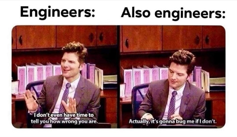 Sound engineering meme. I made this page to vent some frustrations and laugh. Audio systems are bounded between the noise floor and the clipping level. The nature of sound and its representation. Be organized about how you set up for starters i e if you have a lot of fx pedals don t take 20 minutes plugging these up have then pre set up on a board so it only takes you two seconds the quicker you can set up the more time you ll have to sound check. Sound engineers should have all the fun sitting in on seminal recordings and travelling the world. Because of our one on one mentor ship approach the recording conservatory is where truly passionate students are coming to jump start a vibrant career in the music industry. 10 memes only sound engineers should understand.