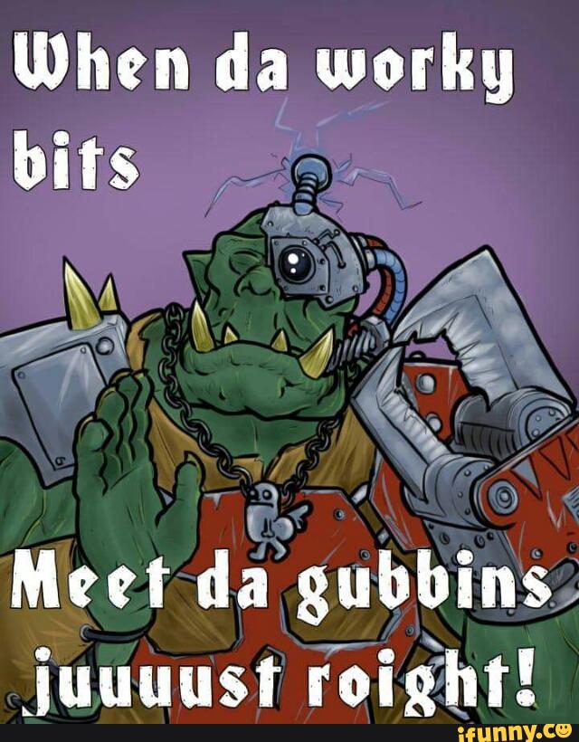 Book reviews blog articles and paint jobs are best posted to other subreddits unless they are incredibly humorous. Apr 20 2019 explore a c s board 40k memes on pinterest. He leads the great waaagh. Warhammer 40k wh40k or simply 40k is a tabletop miniature wargame produced by games workshop set in a dystopian science fantasy universe of the 41st millennium. These eccentric inventions confound friend and foe alike as their purpose often remains a mystery until the big red button gets pushed.