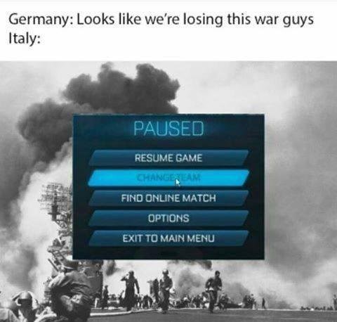 Ww2 memes italy. Press j to jump to the feed. What if the italian army was good in world war 2. View discussions in 2 other communities. You can gather around a nice dish of lasagna or the feast of the seven fishes and laugh with your family about these memes while antonia and maria cook the fifth dessert of the night. Meme status confirmed year unknown origin unknown tags italy military war polandball comics theexistentialdreadkickedin sapsal x2k284 sirjilliumz sebastiano about. New comments cannot be posted and votes cannot be cast. Italy ww2 memes are so hot right now.